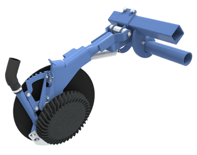 Пневматическая система равномерно распределяет посевной материал по всей ширине захвата и укладывает семена на заданную глубину и препятствует забиванию сошников.